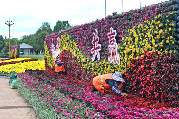 摆花:主城多条道路成鲜花海洋
