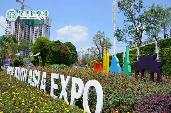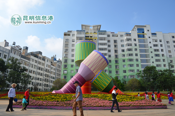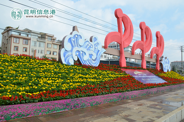 此外,在福保路、北京路等重要道路两侧,官渡区还打造了“团结协作”、“喜迎南博、携手合作”、“都市活力”等一系列主题造型花坛。