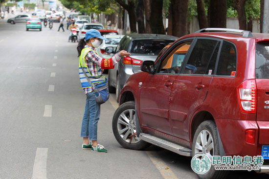 因为毗邻昆明市房产交易中心和几家银行,周边停车设施又很少,护国南路上设置的停车位从早上8点半到晚上5点都很少闲置,有时一个车位一天的停车次数超过10次。训练有素的收费员不用半分钟就能指挥着车驶进车位。