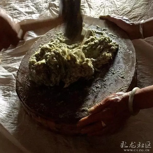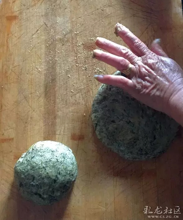 舂臼的时候差不多了,将蒿面从石臼中取出,那颜色是很入眼的:绿白色,清新可爱,当真清清白白的样,散发着自然清香。深深吸一口起,进入鼻翼,自然清新的气息怡人。