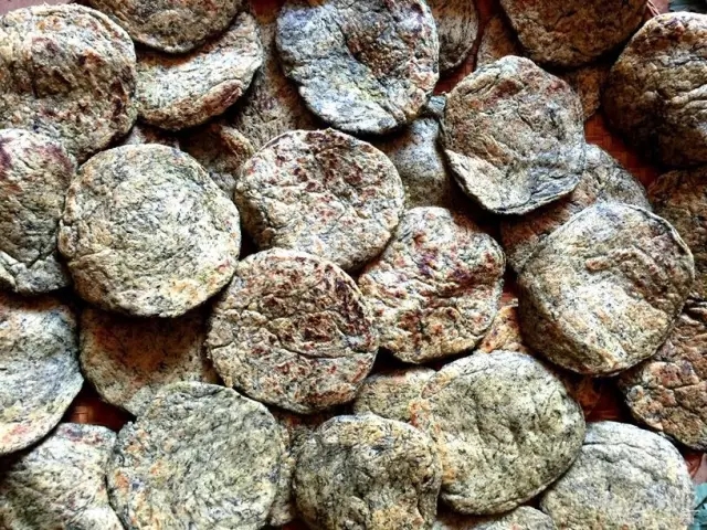 面蒿粑粑是这里的称呼,滇东北一带的俗称,清明时节的一种普通而特别的小吃。就是清明时节采撷野外的面蒿,清洗,和糯米面或者是玉米面一起捣碎了,做成圆圆的直径为几十公分的薄饼,放在火炉上烘烤或者是放在油锅里煎炸而成,需趁热食用。