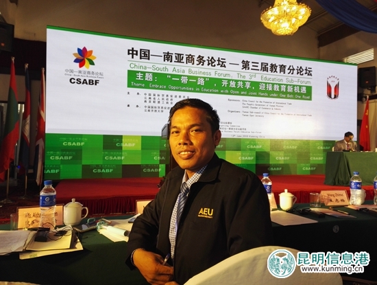 昆明信息港讯 记者陈盈盈 南博会不仅仅只有展馆、商业交易,和经济合作。6月13日,中国—南亚商务论坛—第三届教育分论坛在昆明开幕。来自全世界9个国家的政府官员和12所大学的校长、知名教授参加了论坛,借第四届中国南亚博览会召开的契机,与中国和云南教育界的专家学者们一同分享了其在该国该校的教育经验,并接受昆明信息港记者专访,分享了自己看待云南教育的观点。
