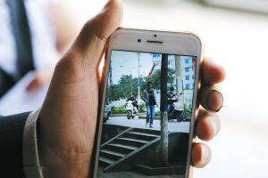 手机视频记录下窃贼偷电动车的一幕。都市时报 首席记者张玉杰/摄