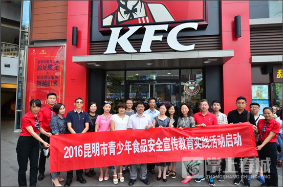 食品安全关系每一个人的身体健康和生命安全。保障食品安全责任重大,需要大力推进社会共治,每年一次的食品安全宣传周活动,是推进社会共治的有效载体,27日,以“尚德守法 共治共享食品安全”为主题,由昆明市食品药品监督管理局、昆明市教育局、共青团昆明市委主办,昆明报业传媒集团-掌上春城与昆明肯德基有限公司承办的“2016昆明市青少年食品安全宣传教育实践系列活动”在昆启动。