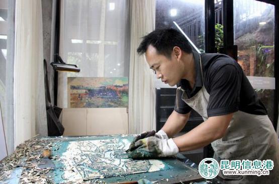 高朝敏说“画画没有缘由,也没想那么多,看见的一瞬间脑海里想到什么,用画表达出来就可以了。”很久没有听见那么直接的回答了,他就是这样一个简单、纯粹的人。具象写实的画制作起来非常费时,最长的一幅单单刻一个主色就花了一个星期。对于他来说,从第一刀下刀开始,就要进入一个专注平和的状态,只有心静下来了,才能制作出好的画作。