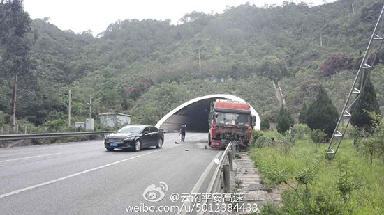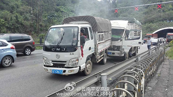 昆楚高速昆明方向彩云隧道出口发生多起追尾事故