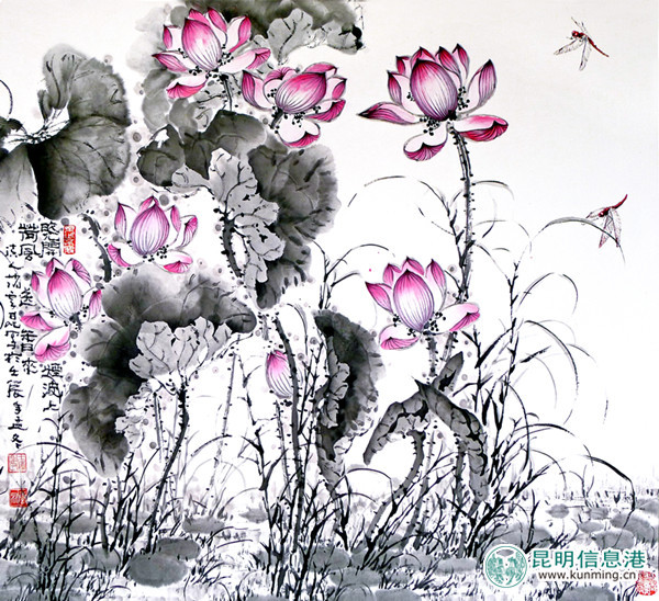 赵云昆作品 晓开烟波上 荷花送香来