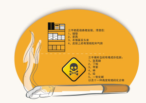 据了解,三手烟是指香烟发散、滞留在墙壁、家具、衣服甚至头发和皮肤上的有害微粒和气体。三手烟所含的有毒成份包括氢氰酸、丁烷、甲苯、砷、铅、一氧化碳、以及十一种高度致癌的化合物。因此,三手烟也被称为依附在墙壁、衣服、椅垫、地毯甚或吸烟者头发和皮肤上的隐形杀手。