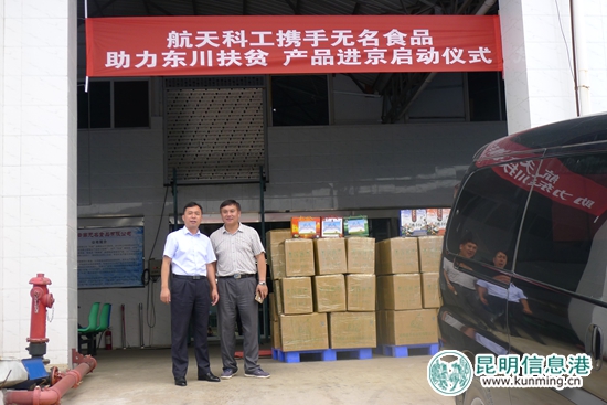 昆明信息港讯 通讯员唐启荣 7月5日,东川无名面条厂内,东川区政府副区长张忠慧与云南无名食品有限公司董事长刘兵,一起为“航天科工携手无名食品,助力东川扶贫,产品进京启动仪式”剪彩。