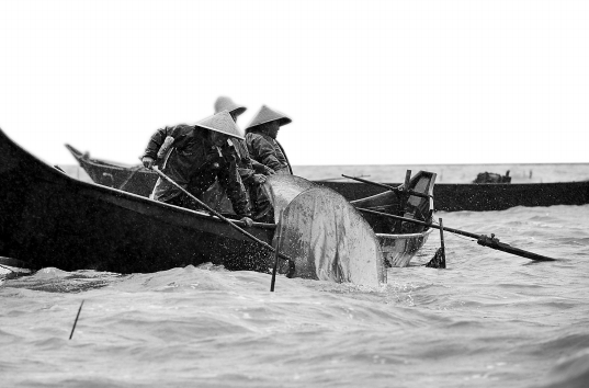 随着渔业高产期的临近,近期偷捕情况在滇池水面日益猖獗,昆明市滇管局渔政处决定开始取缔“重灾区”违禁渔具。在执法船只抵达之前,取缔作业船只已在现场开展工作,水面风浪大,小船摇晃得厉害,即便是用铁链套竹竿这个第一道工序,做起来也十分吃力。