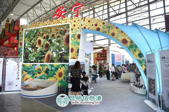 在向阳花背景装点下的“安宁”两个字分外醒目,安宁馆120多平方米的展区内功能区划分清晰,八街玫瑰产品、云财云泽文创示范园、金方森林温泉、玉龙湾景区、奥特莱斯等形象展大放异彩;紫色青阳生物科技公司的主打产品保鲜花(也称永生花)吸足了参观者的眼球;采用环保化工原料精致加工的保鲜花,保持了鲜花的柔软度和形态,并能长时间维持不凋谢的容貌,其制作而成的首饰盒、相框等,精美绝伦。