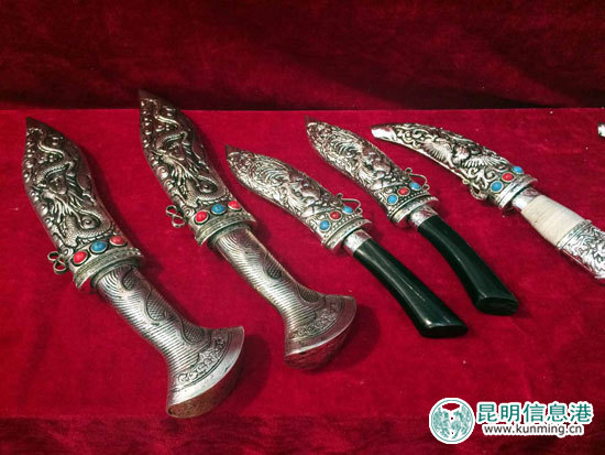 云南州市主题馆内展出的藏刀。记者上官艳君/摄