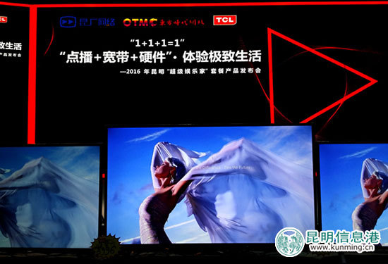 昆明信息港讯 记者林坚 8月16日,由昆广网络、东方时代网络传媒、TCL多媒体科技三家公司强强联手、精心打造的“超级娱乐家”套餐产品正式与昆明消费者见面。