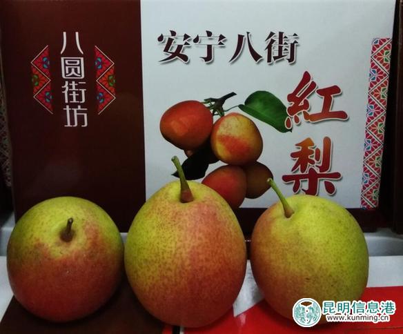 安宁是“中国红梨之乡”,这一殊荣于2007年经中国果业流通协会、中国果品之乡暨果品产业先进典型评选委员会评定。2012年,安宁选送的红梨在北京获得“中华名果”称号。2013年,“安宁红梨”获得地理标志证明商标。 安宁年平均气温14.9℃,年日照2327.5小时,适于红梨生长。安宁红梨色泽鲜红、外观精美,性凉、味甘、微酸,能生精润燥、清热化痰。
