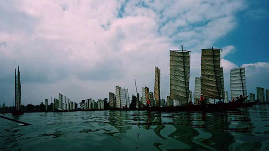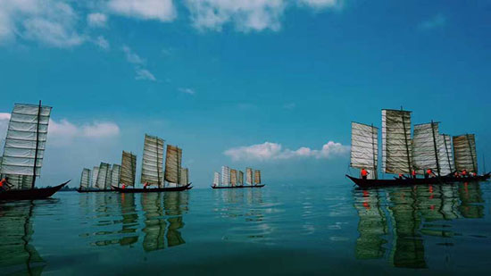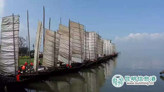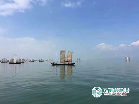 13日上午,“扬帆母亲湖·渔悦古滇美”——2016昆明·晋宁首届滇池开渔节暨古滇渔文化旅游节开幕式在七彩云南·古滇名城滇人竞渡广场正式开始。开幕式上,伴随嘹亮的号角声和震撼的锣鼓声,停泊在古滇艺海大码头栈桥外的近百艘人力帆船同时升起风帆,驶向滇池,展现了“百舸入滇,千帆竞发”的壮丽景象。