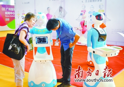 在伊立浦餐饮机器人展区里,一款“智能炒菜机器人”吸引了大批“吃货”的目光。“机器人的程序里,记下了多款美食的制作菜谱。”伊立浦总经理何江城向记者介绍,“你只需要预设好菜单,并按照提示投放食材,它就会自动投调味料、自动控制烹饪火力,并自动出菜。”