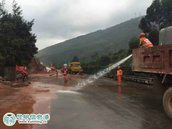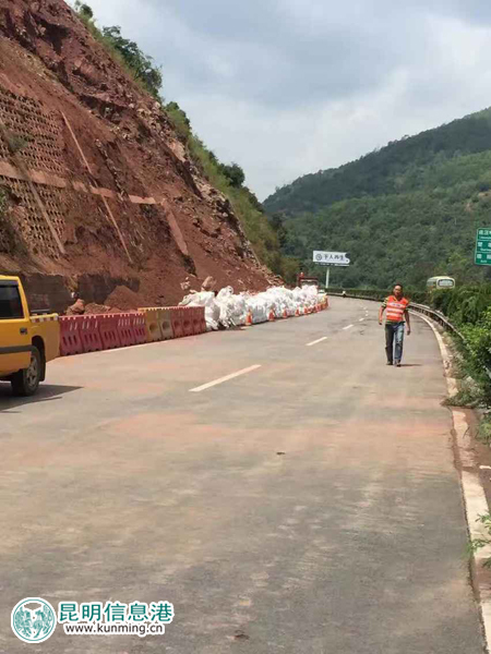 为了确保尽快恢复交通畅通,云南公投昆明西管理处、建设集团养护公司启动二级应急预案,成立应急抢险工作组。云南省公投公司紧急调动抢险人员330余人,挖机11台、装载机3台、吊车1台、小货车5辆、自卸车19辆、拖车5辆,载全力开展抢险工作并及时组织清理落石。