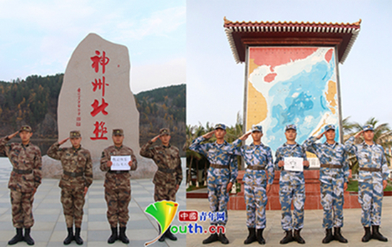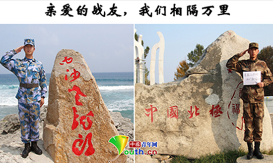 在永兴、石岛等岛屿驻防的“天涯哨兵”站在“西沙老龙头”向“北极哨兵”致敬。“亲爱的战友,我们相隔万里!”三沙如今已建设得十分美丽,永兴岛上的生活条件日益改善,引进先进技术,战士们现在每天都能吃上新鲜蔬菜。 (摄影:卢冠琼/邹德勇)