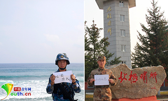 在举国同庆67华诞之时,驻守于中国南大门的“天涯哨兵”与驻守于中国北大门的“北极哨兵”在自己的战位上,向祖国人民送出了祝福。相隔万里,一场特殊的对话温暖着国庆。