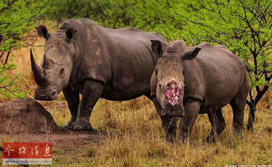 资料图片:被割掉角的犀牛