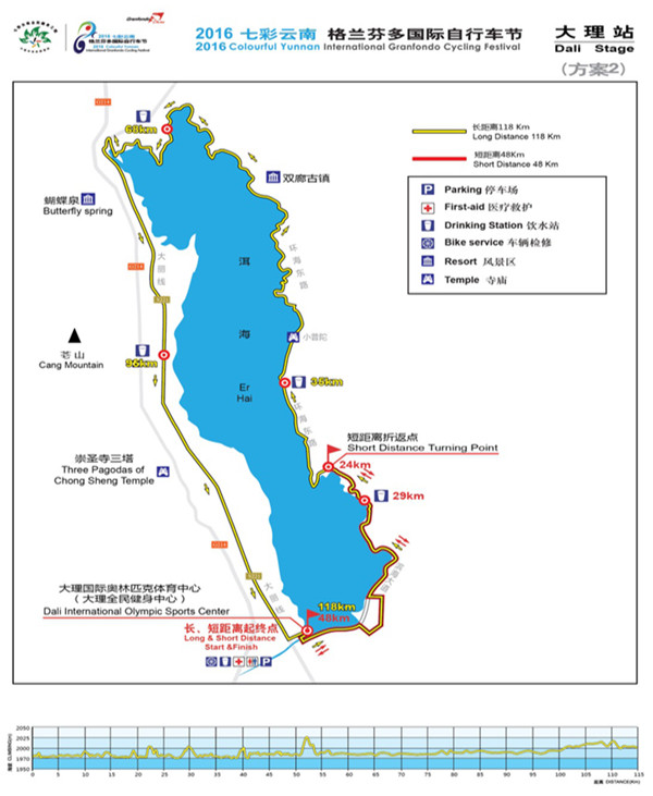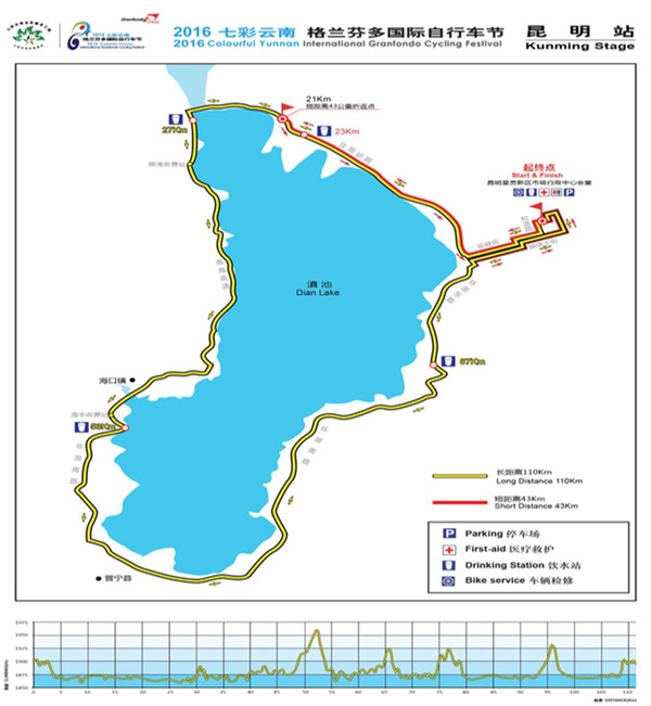 据云南省体育局消息,2016年第三届七彩云南格兰芬多国际自行车节将于11月6日—12日在云南举办,赛事总里程约530公里,将分昆明、玉溪、楚雄、大理、丽江5个赛段。