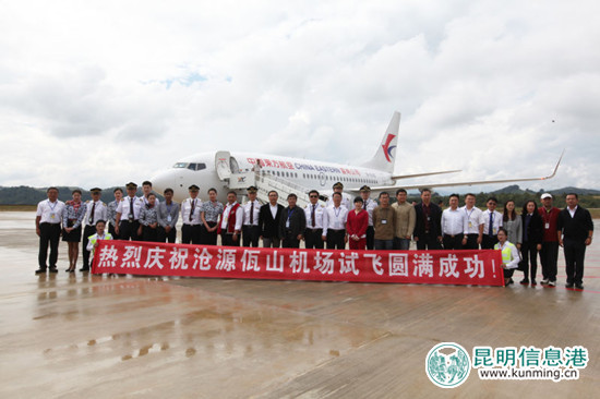 昆明信息港讯 记者上官艳君 10月25日14时52分,一架承载着云南沧源佤山人民蓝天梦想的东航B737-700从昆明起飞,穿越云海稳稳降落在机场跑道,这也标志着沧源佤山机场试飞工作正式拉开帷幕。