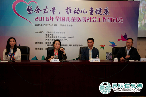 昆明信息港讯 记者纳娅 10月27日,由世界健康基金会(Project HOPE)、全球暴力和虐待预防学会(Academic of Violence and Abuse)、香港大学、上海市社会工作者协会主办,上海交通大学医学院附属上海儿童医学中心和昆明市儿童医院共同承办,国药控股有限公司协办的“整合力量,推动儿童健康——2016全国儿童医院社会工作研讨会在滇池大酒店举办,会议为期两天。