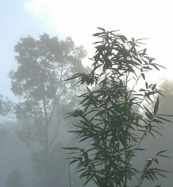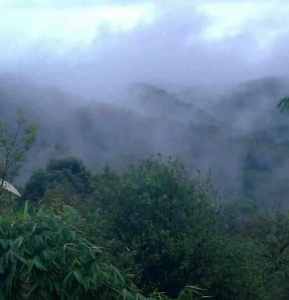 我们在山庄的第二天,下雨的早晨,山庄四周雾气缭绕。