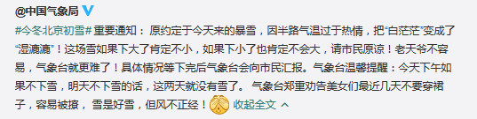 而北京在小雪的前一天就下起了雪,这场初雪比平常要早了8天。雪景虽美,随之而来的降幅达10℃的气温。