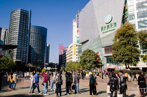 昆明的街头也有羽绒服,但T恤、裙子等非冬日穿着也随着昆明人的性子大大方方地出现在大街小巷,让人分不清季节。