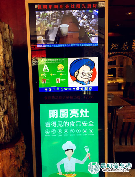在幼儿园,市民一行走进该园厨房。洗菜池、洗肉池分类排列整齐,在洗菜不远处独立设置了消毒间,可以看见保洁柜里存放着已经消毒完毕的餐具。储物间里面存放的食品原料也井然有序,分类存放。随后,市民一行来到外婆味道白龙路店,首先跃入大家眼帘的就是一台机器。这台机器是“明厨亮灶终端机”。机器上屏展示的是透明厨房,消费者可以在大厅内直接观看餐厅后厨监控,看到食品加工环境的卫生情况和厨师操作的情况。机器中屏是一个触摸屏,点击相关按钮可以了解食材来源、食材加工等食品安全信息。“开展‘厨房见阳光’的工作,让前来就餐的市民吃上放心饭。我们严格按照盘龙区市场监管局的要求,做到每一项都合乎标准。”酒店工作人员向大家说。