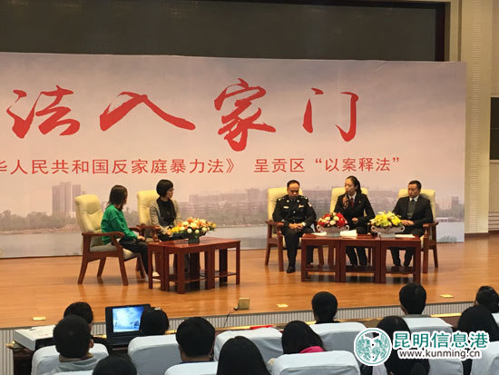 昆明信息港讯 记者杨炎 12月7日,呈贡区妇联、区司法局、市公安局呈贡分局等部门联合举行“法入家门”反家暴法主题宣讲,来自呈贡区各部门、街道社区310余人参与观摩。现场通过访谈问答的形式“以案释法”,带来了一场别开生面的普法宣传活动。