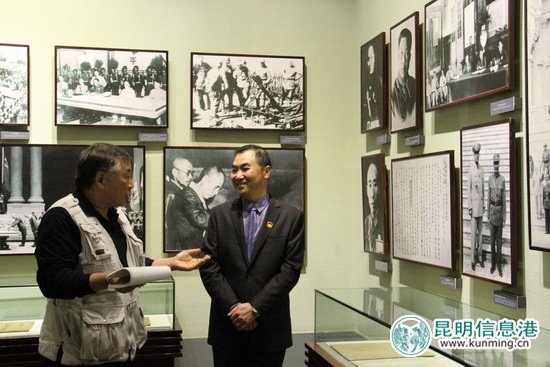 捐赠仪式结束后,鲁以国一行参观了云南陆军讲武堂历史博物馆的“百年军校 将帅摇篮”主题展览,在鲁道源及部队出滇抗战的史料图片前,他向随行人员讲述了父亲抗战的英勇事迹。