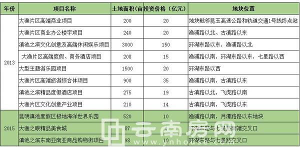 首先是2013年7月,昆明滇池国家旅游度假区一次性发布了8个项目的招商信息,总占地面积6533亩,总投资额预计约293亿元。2015年7月,昆明滇池国家旅游度假区又发布了3个项目的招商信息,总占地面积705亩,总投资额预计约24亿元。除了大批量的项目统一招商之外,另有部分项目也在陆陆续续的招商推进中,但因旅游项目开发投资题量大、建设周期长、回报慢等制约因素,大渔片区开发多年以来落地项目却寥寥无几。除了大渔欣城,在建的倚澜苑项目,再无其他项目有实质性进展。