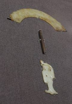 有人认为,这不过是两件非常普通的玉饰。真是这么简单吗?在海昏侯墓出土的一批十分珍贵的玉饰中,一件组玉佩的中间,也有一个相似的玉管(图2)。但相比之下,一是器型大小不同。