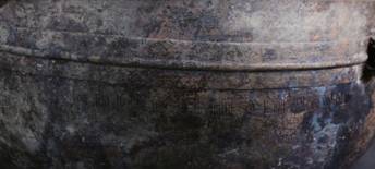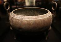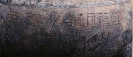 在农耕社会中,量器非常重要,关系到国计民生。海昏侯墓中就出土了形形色色的量器。如主椁室内的一件子母量器,一大一小套在一起,学名应叫漆椭量,与汉代朝廷颁发的标准量器无异(图5)。又如“昌邑籍田鼎”其实也是一件标准的量器,其铭文为“昌邑籍田铜鼎,容十斗,重四十八斤,第二”(图6)。按照汉代的规定,十斗为一斛,这个“昌邑籍田鼎”就是标准的一斛。这也从一个侧面解释了海昏侯墓出土的鼎为什么会多于九件,因为有的不是祭祀用的,而是日常使用的量器。再如两件青铜鋗,一件铭文为“昌邑食官铭,容十斗,重四十斤,昌邑□□年造(图7)。另一件铭文为“昌邑食官铭,容四斗,重十三斤十两,昌邑二年造”。这些有铭文的量器,通行于昌邑王国、海昏侯国所在的地区,可以用于校准周边特别是所属食邑户的其他量器。这就为深入研究以黄钟律管为基准的西汉量器体系,提供了宝贵的实物依据。