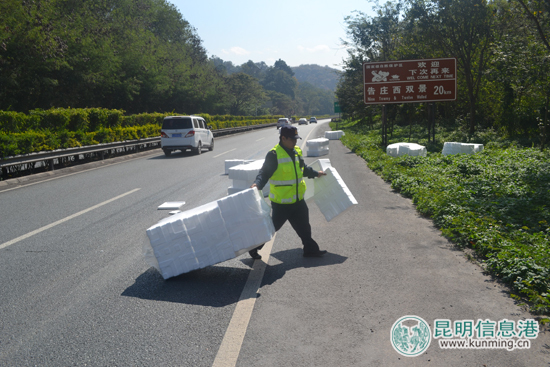 春运期间,昆磨高速公路路政支队所辖各大队、各中队的路政人员坚守在保春运的各个岗位。一旦有驾乘人员求助,路政员们便及时为故障车换胎、送油;遇上事故车,还忙着抢送伤员、疏通滞留车辆;在服务区,不厌其烦地接受人们咨询、为满足人们的种种需求忙碌着。