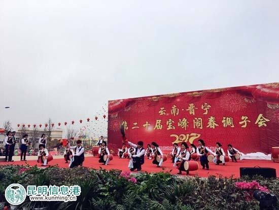 昆明信息港讯 记者段佳琪 2月11日,在晋宁昆阳街道宝峰民族文化广场,数万群众欢聚“第二十届宝峰闹春调子会”。调子会上,来自省内外的48对选手、96人纵情放歌,争当“歌王”、“歌后”。此外,宝峰镇还将举行别具趣味的“接佛”活动。