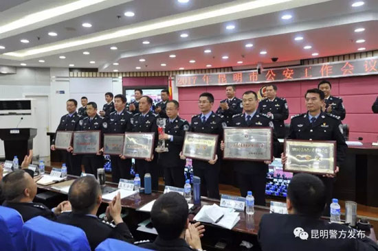 会议对全市公安机关2016年度做出突出成绩的单位和个人进行了表彰。(昆明警方发布)
