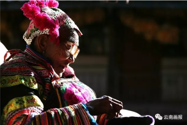 这一天,彝家儿女把夕阳当做聚光灯,一队接一队出场,在唢呐、芦笙的伴奏中翩翩起舞,展示各自漂亮的服装服饰和优美的舞姿。蓝天白云,漫山遍野绣满花红叶绿的衣裤鞋帽,刺绣针针细腻,线线密匝,放眼望去,令人震撼又沉醉。