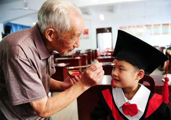 照片由宁波市教育局提供童老生前为启蒙学生点“聪明记”。照片由宁波市教育局提供