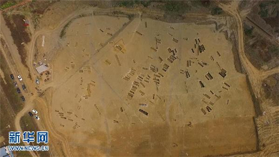 3日,记者走进发掘现场,看到足有两个足球场大的平地内,密集分布着大小不一的长方形竖穴土坑墓。墓坑大部分为南北向,少量为东西向,大部分墓葬葬具为船棺。多数墓葬成组分布,有的两座一组,有的三座一组,也有十多座一组。