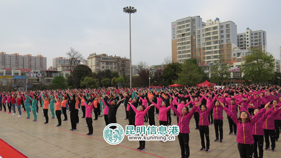 昆明信息港讯 通讯员吕汶峻 3月8日上午,嵩明县妇联在县城兰茂广场组织开展以“展示健康时尚新形象,争做最美嵩明人”为主题的嵩明县2017年“三八”妇女节健身操大赛。县委副书记潘加智、县委常委、县委宣传部部长施晓玲、县人大常委会副主任桂志芬,县副县长胡国海,县政协副主席普菊珍等领导莅临活动现场作指导,来自全县各条战线38支参赛队伍,897人参与活动。