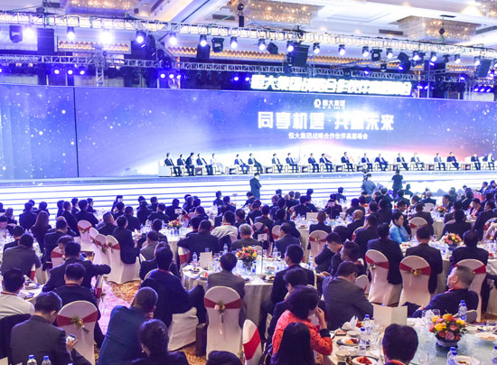 昆明信息港讯 3月22日,恒大集团举行2017年度战略合作伙伴高层峰会,与恒大长期战略合作的中国建筑、中铁建设、广田控股、奥的斯、美标、西门子、易居中国等600多位国内外知名企业董事长纷纷出席。业内人士指出,在产业链整合不断加速的背景下,恒大不断深化与上下游龙头企业的战略合作,在自身实力不断增强的同时有力拉动了房地产上下游企业的发展,推动了房地产行业持续稳定发展。