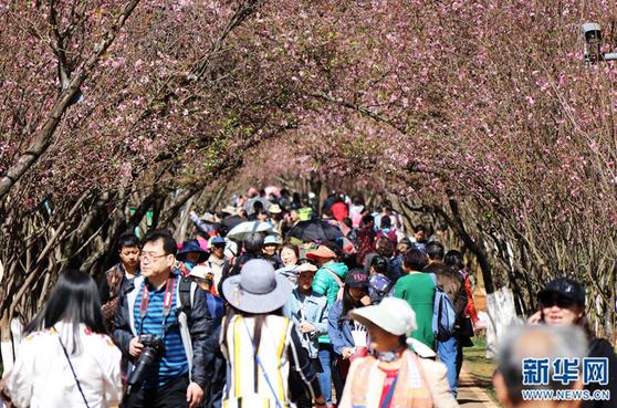 阳春三月,昆明圆通山樱花怒放,灿若云霞的花潮吸引了大量游客前来踏春赏花。“圆通花潮”景观历史悠久、名扬中外,每到春季,登临圆通山踏春赏花是昆明人的传统习俗,形成了蔚为壮观的花潮人海。据了解,圆通山上的樱花、海棠面积达18000平方米。(新华网 罗春明)