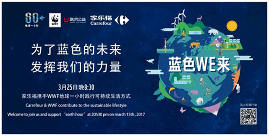 这是家乐福第十年与世界自然基金会(WWF)携手启动“地球一小时”行动,坚持节能减排的目标,身体力行地为低碳环保做出贡献。据悉,今年“地球一小时”的主题依旧从“蓝天”入手,鼓励企业公众从自身小事做起,践行可持续的生活和消费方式,让雾霾不在,让蓝天依旧。