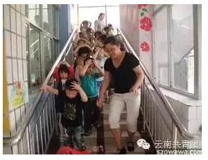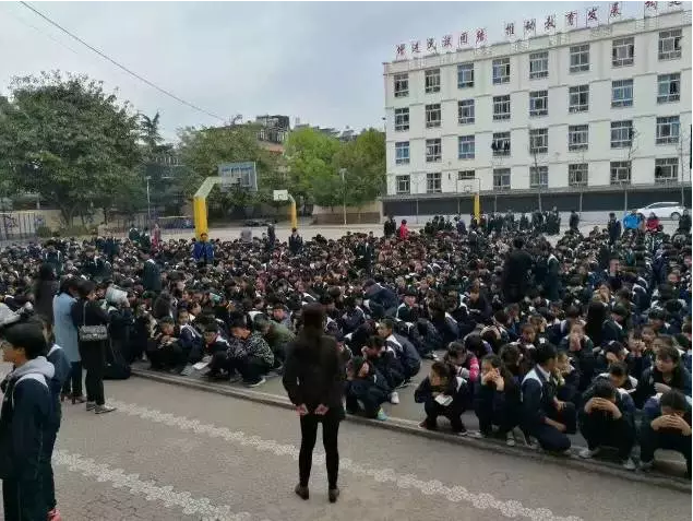 地震发生时,很多学校将学生安全疏散至安全地带。