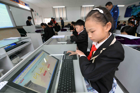 学生们网上祭奠英烈。记者杜文蕾/摄