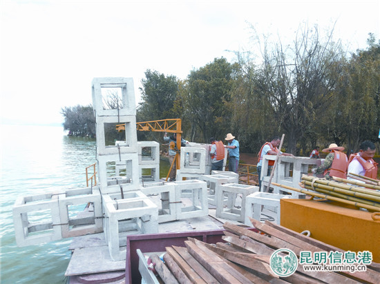 放置人工鱼礁 昆明市滇池管理局渔业行政执法处供图