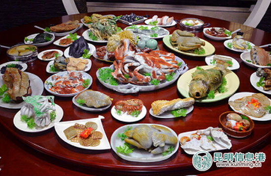 昆明信息港讯 记者江枫 4月7日下午,“满汉全席翡翠宴”暨粤湘滇名菜品鉴会,在昆明经济技术开发区紫云青鸟文化创意博览园举行,来自健兴利翡翠酒店、紫云青鸟创意博览园的大厨们,制作了近百道或真或假的粤、湘、滇玉石“美食”,让莅临现场的嘉宾啧啧称赞。